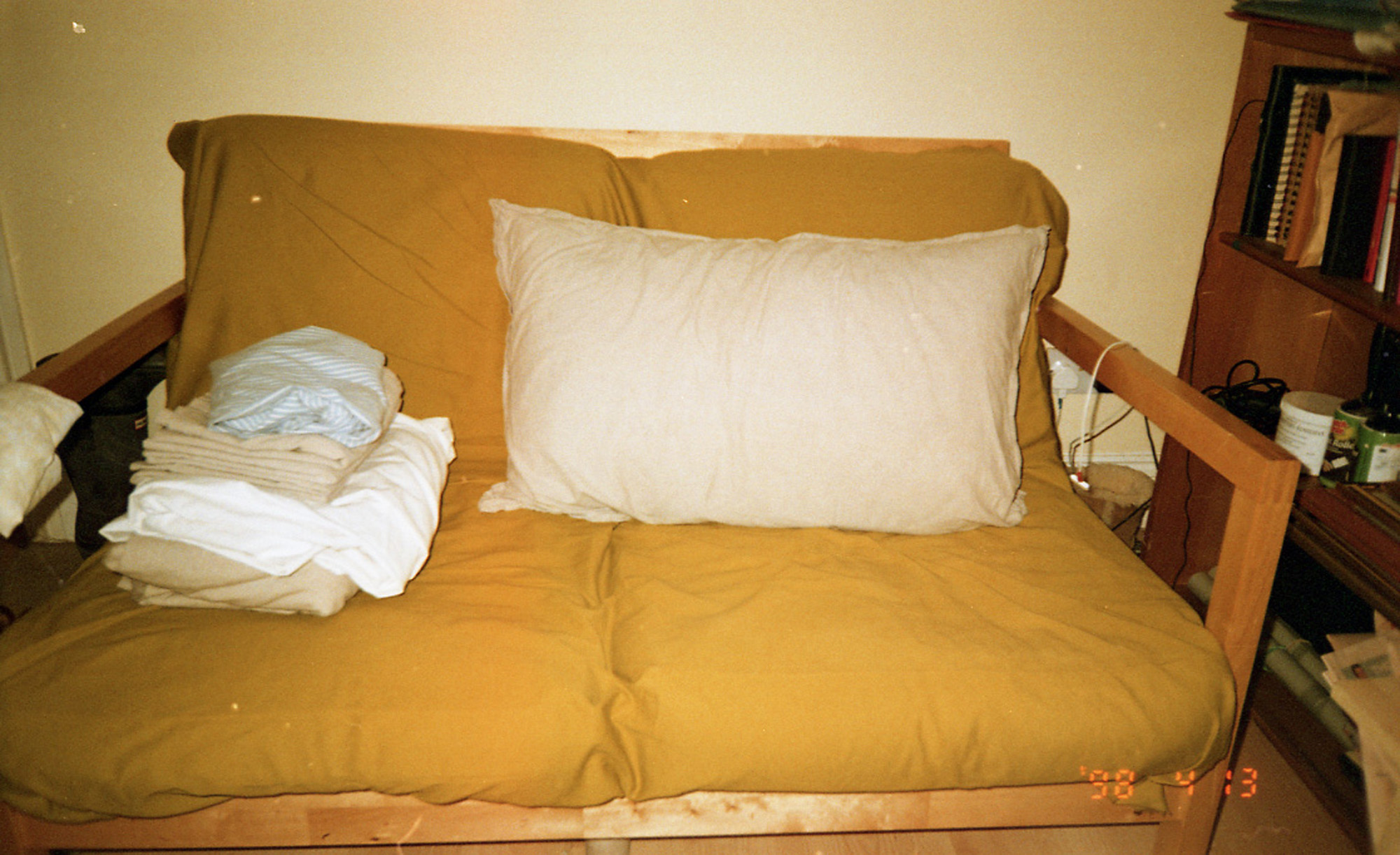 There was no bed in the new flat, so my boyfriend and I both slept on this sofa for three months until the bed arrived. What a memory!