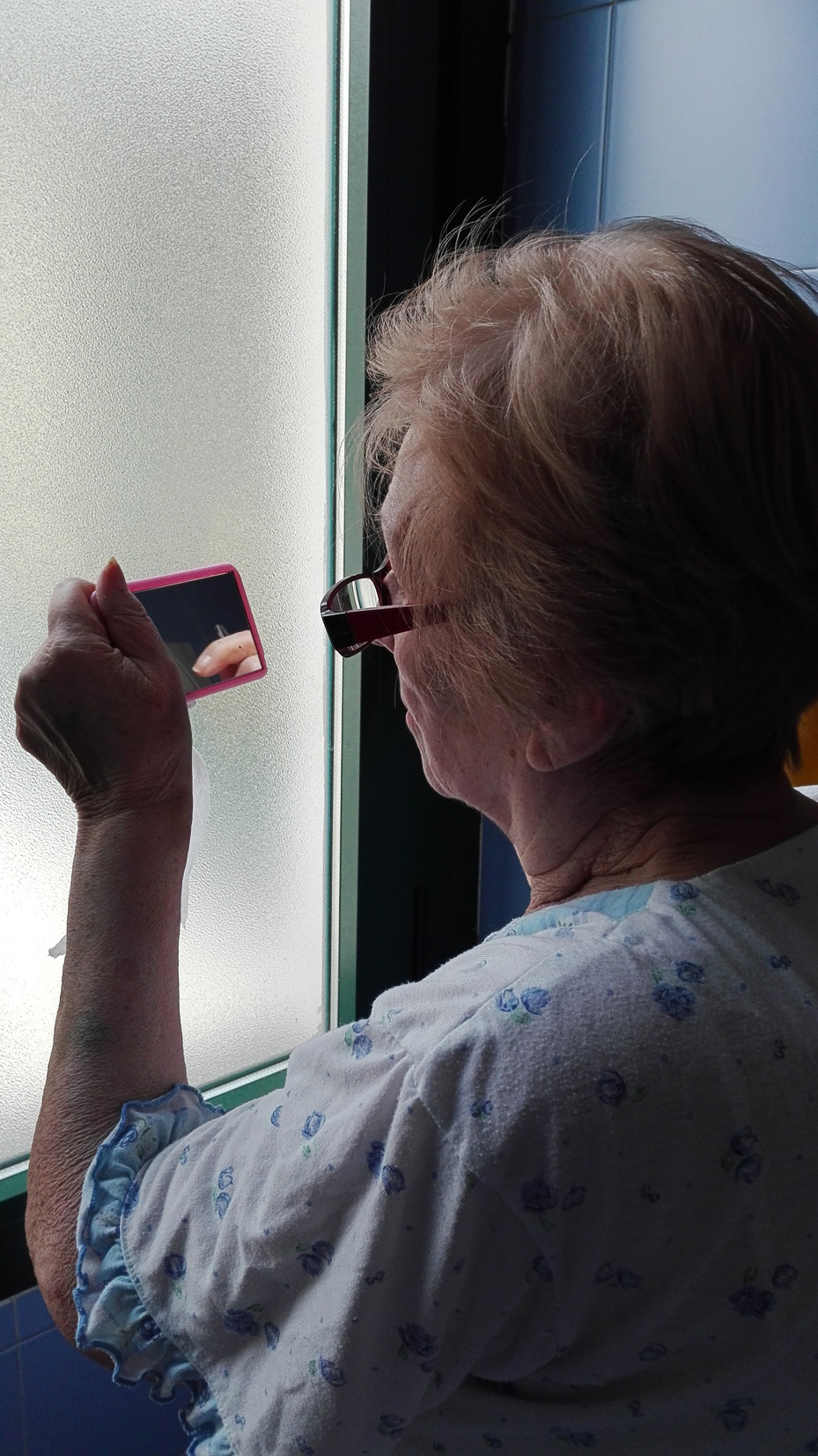 Last year my grandmother, the woman who raised me, underwent a major heart surgery after a minor stroke. According to the doctor, the chance to survive this surgery was less than 40%. I was totally unprepared and confused. I had never thought about the possibility of losing her. I hardly slept that night. I was trying to prepare myself for what the future held in store. Trying to digest before eating. On the day of the surgery I had an important exam that I could not miss. Just before the exam I received this photo from my mom. Granny was taking care of her hair, mere hours after having risked her life.