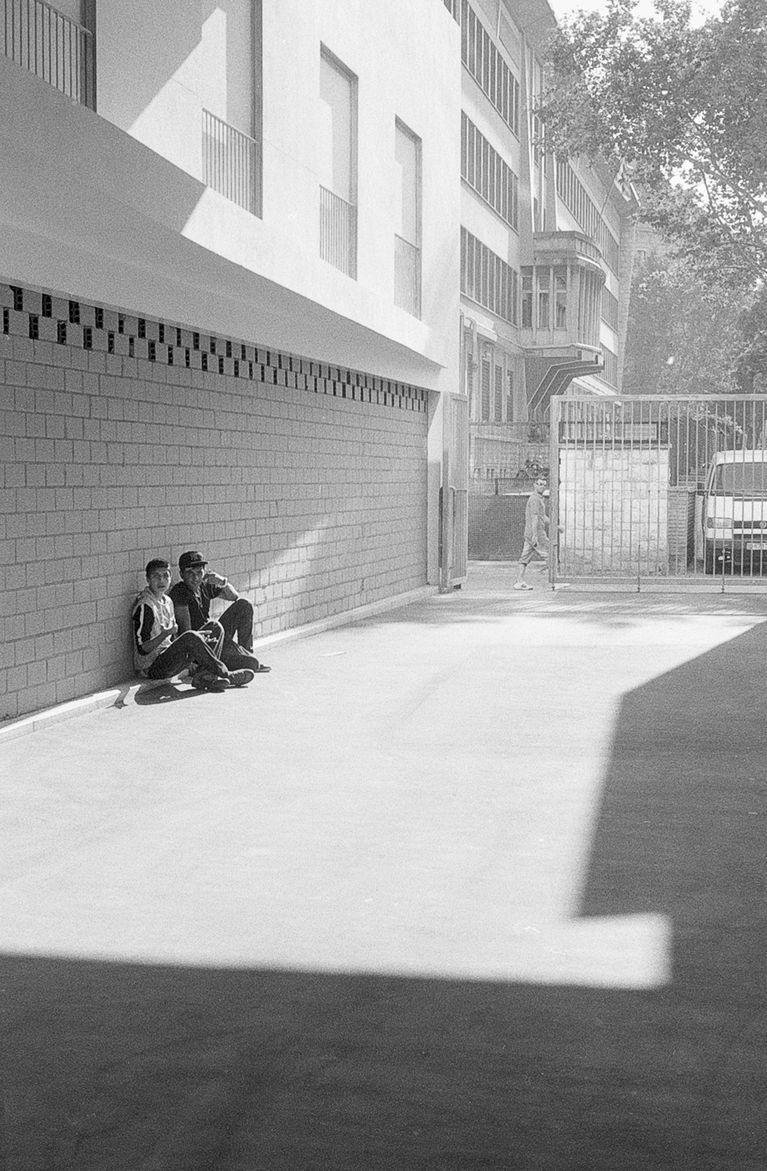 This is an image of the first b/w film I shot. It was in October 2012, right when I bought a little Canon AE-1. I took this image in Barcelona. I remember the feeling of trying to capture moments and people I probably would never get to see without a camera. I left the city center and walked around in the little alleys and backyards. I came across two boys smoking weed.